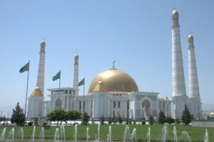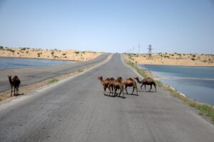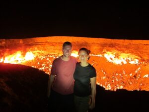 Here is a quick synopsis of the 3 cities we spent the most time in. Ashgabat feels like a sci-fi movie set with the highest concentration of marble buildings in the world. And not one of them looks lived in. Massive super clean highways and roads and not a single car driving on them. Completely and utterly surreal…definitely a twilight zone moment where we kept pinching ourselves and wondering how the hell a capital city can function this way. Darvaza crater actually ended up being 3 craters – water, mud and gas. The gas crater (aka “Gate to Hell”) has been burning for over 40 years and it did not disappoint…super cool and well worth the arduous journey to get there! Konye Urgench had an impressive minaret and also served as the gateway to Uzbekistan.