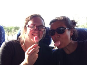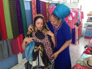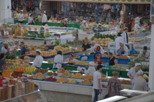 08 Jun –During breakfast, Andy handed Maksat his tip and thanked him for everything he had done for us. Then it was border time. Turkmenistan busted our chops leaving the country, demanding that we pull all of our bags off the truck to be scanned. Becky’s passport was singled out and she was shuffled around between 3 different officials, with one of them drilling her about countries visited and what she honestly thought about Ashgabat. Denise was also given a hard time because the official could not believe that she was a British black woman. Despite her British passport, he kept insisting she was American and she kept denying it repeatedly. He could not comprehend that Britain has blacks too! It was all a bit bizarre but we were finally stamped out of country and onward to country #4 of our tour, Uzbekistan!