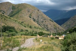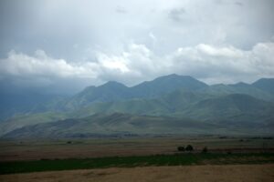 Crossing the border from Uzbekistan into Kazakhstan (Yalama / B. Konysbayeva) was hellishly long because two members of our group (Daniel from Canada and Kevin from Ireland) had neglected to obtain their Kazakhstan visas prior to arrival. Since they had already been stamped out of Uzbekistan, they were stuck in no-man’s land because the B. Konysbayeva border crossing didn’t have the capablity to issue Kazakhstan visas. Welcome to Central Asian bureaucracy at its finest! Uzbekistan would not let either of them re-enter because they only had a single entry visa which had already been used. And so we waited…and waited…and waited. The waiting game ended up being a total of 9 hours! In the end, the 2 misfits were allowed back into Uzbekistan where they made their way directly to Kyrgyzstan, bypassing Kazakhstan completely. The rest of us happily made our way just a few meters into Kazakhstan where Becky’s cook group (Ben, Becky and Gill) prepared an awesome dinner of tuna pasta. Then it was off to a bush camp for our first night in country. The next two nights saw us at the Aksu-Zhabagly Nature Reserve. First day was Bjorn’s birthday celebration after a massive truck clean. Second day we enjoyed a 5 hour horse ride through the mountains which was spectacular. After Aksu-Zhabagly, we headed to the town of Taraz for cook group shopping before stopping at our final bush camp in Kazakhstan. Borat (complete with mankini) made a sudden appearance much to our group’s delight. And then disaster struck in a freak accident involving Ben, Michael and a tennis ball. Ben ended up with two broken bones and a whole lotta pain. He was rushed off to hospital for the night with Michael, Bjorn, Chris, Tina, Kate and Ant accompanying him. The rest of us were stranded in the middle of the bush camp with nothing but our tent buddies to keep us company. The skies opened up and we received the fiercest downpour of the trip, complete with thunder and lightning to cause us to worry. We survived the night and were picked up early the next morning so we could retrieve Ben from the hospital in time for the border crossing with Kyrgyzstan. Needless to say it was a crazy 4 days in Kazakhstan…an adventure that none of us will soon forget!