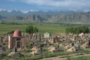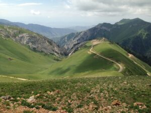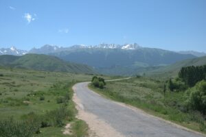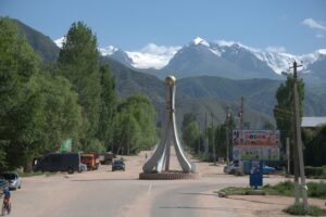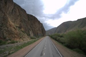 04 Jul – Happy 4th of July! We had a quick early morning breakfast and were on the road by 7 am. Today we were conquering the Torugart Pass, one of the most notoriously difficult border crossings in the world. Our first checkpoint was near the border, not far from where we had camped. Last night everyone had collected their individual passports from storage and Helen had discovered that her visa to China was probably not valid anymore. What a horrible feeling! She was nervous about whether she’d be able to enter China or not and was extremely anxious this morning. At the first checkpoint, our passports were given a quick look-over and we linked up with our mandatory escort who assisted us with getting to the China border. The second checkpoint was near Chatyr-Kul Lake and again, we were all granted access through. Since Helen had successfully made it through the first 2 checkpoints, we were feeling confident that she would be allowed through. Disaster struck at checkpoint #3 and it didn’t just impact Helen. Dya was told that her visa was also invalid! The news came as a shock as we were suddenly in the situation where we had to bid farewell to not just one of our travel companions but to both of them! Dya and Helen could not proceed any further, but luckily our mandatory Kyrgyz guide was able to squeeze them into her car for the ride back to Bishkek. The rest of us had our passports stamped out of Kyrgyzstan and were on our way to China!