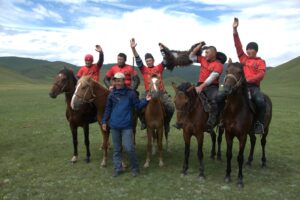 After the mountain resort of Altyn Arashan, we had one night at a homestay in Karakol. Little did we know this would be the start of a week of slaughter (sheep, rabbit, sheep)! When our homestay hosts offered to cook us a lamb dinner, everyone readily agreed since the meals on top of Altyn Arashan had been vegetarian and we were craving meat. Then we found out that our innocent dinner was bleating away happily in the barn! Yup, we had front row seats to the selection and preparation of our evening meal. Our host deftly handled the fat-tailed sheep from start to finish and we found the entire process morbidly fascinating. Nothing went to waste…even the bountiful “J-Lo” bottom was sliced up and thrown in the mix. Some of us who witnessed the entire process were now borderline vegetarian wanna-bes! From Karakol, we made our way to Jeti Orguz where we were supposed to cross 5 precarious wooden log bridges. However, Kate got word that the border between Kyrgyzstan and China was going to be impacted by an upcoming Chinese festival, and if we didn’t readjust our schedule to the left by 2 days, we would have an extra week in Kyrgyzstan (which would shortchange our itinerary in China). After voting, we opted to skip the mountains of Jeti Orguz and instead, spent lunchtime hiking around the red sandstone cliffs at the base of Jeti Orguz which are locally known as the “Seven Bulls”. Then it was off to a bush camp where we watched the nomadic tradition of eagle hunting. A poor bunny rabbit was the unsuspecting victim and it didn’t stand a chance next to the talons of the eagle. Pretty brutal stuff but the eagle left satisfied! Our last few days in Kyrgyzstan were spent at a yurtstay near Lake Son-Kul. There, we got to ride horses for a few hours in the morning and in the afternoon, we were lucky enough to witness a match of traditional goat polo (also known as “buzkashi” or “ulak-tartysh”). However, since there were no goats roaming about in the “jailoos” (summer pastures) of Lake Son-Kul, the players opted to sacrifice a sheep instead, thus ending the animal killing spree of the week. The chosen sheep was summarily beheaded and its headless carcass was used by opposing members of a team to score goals in a game that can best be described as a fierce version of rugby on horseback. And then, just like that, our time in Kyrgyzstan came to an end. This stunningly beautiful country ended up being our favorite of the ‘Stans…we definitely saved the best for last! Next up is China for about a month or so. Not sure how reliable internet will be or if our VPN will work so we’ll find out together.