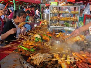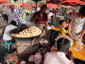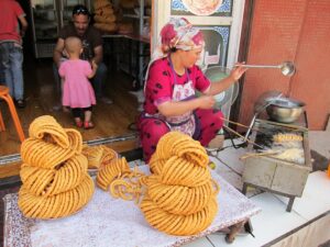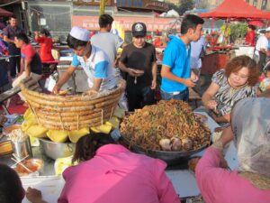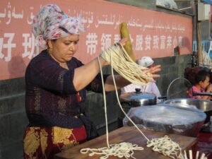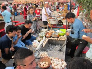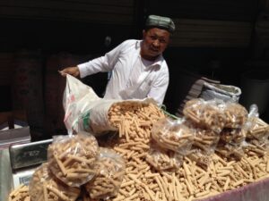 9 Jul – Sometimes you just need a day to chill and do nothing. Today was one of those days. Kate and Kyle made pancakes for breakfast! How awesome are those two? We enjoyed our pancake treats and then relaxed in our room until we had a late lunch at a noodle shack that Lars & Ichiyo recommended. Kyle was already there waiting for his food so we joined him for a quick meal. Afterwards, Robby picked up some Jieke Chalixun (rip off Jack Daniels) and we sauntered back to the hotel. Our one big activity today was linking up with everyone at 8 pm for the Kashgar night market. It was a smaller night market than we had anticipated but had lots of interesting photo opportunities. We tried a couple of the strange snacks on offer for our dinner meal and were back at the hotel by 10 pm. The internet was OK for a quick call back to the family before relaxing for the rest of the night. An easy, low stress day!