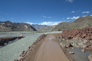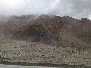 07 Jul – Apparently we were gouged in fees at the Karakol campsite, so Kate was keen on finding an alternate place to camp tonight. We broke camp after breakfast and drove several hours in the direction of Tashkurgan, which was reputedly a hot spring resort. Unfortunately, the term “resort” is used loosely. There were no pools to soak in and the resort resembled a facility where people would go to for medical treatment. We were offered several wooden tubs to cram ourselves into but they did not look inviting and more importantly, we could do the same thing in a bathtub at any hotel room. So we used the stop as an impromptu lunch break and retreated back towards Lake Karakol, stopping at the entrance of Oytagh Glacier Park for a quick view of the glacier. Kyle was treated like a rock star here, with locals rushing up to take photos with him! Amazingly, Kate and Kyle managed to find a secluded bush camp that we could pull into so we were able to avoid a second night of extortionate camping fees. Kate was bursting with excitement as we pulled into this bush camp, stating she had a surprise for us but just needed help with a fire. The surprise ended up being prawn crackers (yum) and S’mores (marshmallows, chocolate and graham crackers). It was a nice treat and helped kill the time as we didn’t want to set up our tents too early in case nosy locals came by to demand we move on. Robby’s cookgroup (Robby, Ichi and Chris) was on tap to prepare dinner tonight and unfortunately it was one of the coldest nights of the trip so they came up with a group dance to stay warm. An unexpected rain storm had everyone retreating to their tents but thankfully it passed in a few minutes so we could emerge to enjoy the frigid conditions together. After dinner, the truck became our toasty retreat as young Gill read off “Who wants to be a millionaire” quiz questions for our evening entertainment. Amazingly, when we decided to retire to our tents for the night at 10 pm, the light was still conducive for photos. This section of the Karakoram Highway is undoubtedly beautiful.