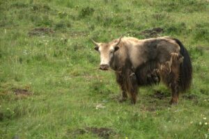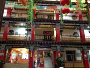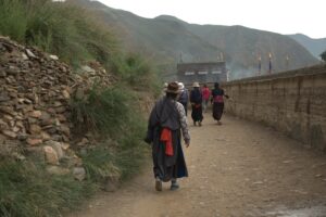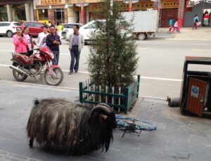 23 Jul: After lunch we drove to Xiahe, which was an interesting drive because we got to see the strong Muslim presence in this corner of China (dozens of mosque minarets could be seen in every road side town) before we entered into the Tibetan area. Tom (Chinese guide and navigator) must have fallen asleep and caused us to miss our exit because we drove an hour out of the way before Kyle finally did a u-turn and drove us back towards Xiahe. It was late afternoon by the time we finally reached Xiahe where we parked in the parking lot of the Labrang Monastery and walked to the Labrang Bao Ma Hotel (which is a really nice Tibetan style building). The wifi signal didn’t reach our room but we were starving so rather than fret about it, we decided to find a place to eat right away with Lars and Ichiyo. First place we hopped into was recommended by Lonely Planet but it was full of tourists and the menu wasn’t budget friendly so we decided to look elsewhere. That was the moment we met “angry goat”, a massively obese, long-haired, ornery goat that was walking down the sidewalk attacking people. Unprovoked! We laughed as he even head-butted Robby in the legs! Eventually, we stumbled upon the Gesar Restaurant, which appeared shut but opened right up when the 4 of us strolled in. All of us ended up very happy with our meals, and would recommend this place (even though it did take a long time for our food to be served so don’t go hungry). Right when we were about to leave it started raining really hard and then the power went out so we turned right back around and ordered another round of drinks. When the rain finally eased up a bit, we decided to make a mad dash for the hotel even though the power was still out so it was a wild scramble in the dark. We were wondering if our key cards would still grant us access to our hotel room despite the power outage but as luck would have it, power was restored by the time we reached our rooms so we never got to find out. First impressions of Xiahe: a funky Tibetan town that has a super cool vibe. Can’t wait to check out the monastery tomorrow!