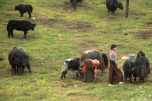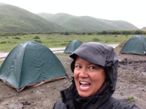 25 Jul – Goodbye Xiahe! Kate had given us a departure time so it was up to us to pack up and head over to the truck after breakfast. From Xiahe, we drove towards Langmu to visit the Dacanglang Monastery. We actually enjoyed Da Cang Lang Mu Monastery (大仓郎木寺)a whole lot more than Labrang Monastery because there were far fewer tourists and the temples were in much better condition. Kate sneakily arranged for lunch at a Chinese restaurant in Langmu (Oasis’ treat) where we enjoyed a delicious mix of about seven different dishes (every dish was popular except for the tofu, ha). Even though we had free time to explore this city, it started pouring with rain when we were finishing up our meals so we opted to return to the truck to wait out the storm. When the rest of the group showed up, we drove for the rest of the afternoon until Kyle found a suitable spot to bush camp for the night. Our bush camp was just south of Dazhasi near a place called Little Village. Kate P wanted to experience her first truck party and we happily obliged, getting the party started about an hour before Kyle pulled over for the day. Kate F tried to trick Kyle into participating (hiding on the truck until he showed up, wondering what the heck was going on) but Kyle was having none of it. The rest of us drank and chatted while Kate F and Tom volunteered to do cook group duties, whipping up some delicious dumplings in the rain. While they were cooking, several curious locals showed up to check them out. Outfitted in clear plastic rain jackets, hats and face masks, the silent women looked like creepy zombies checking us out. Or that might just be the rice wine talking. Getting stared at in complete silence was something we never got used to…one of the more bizarre aspects of bush camping in China! After dinner our truck party continued with more drinking and dancing. Robby’s Uzbek smelly sheep hat even made an appearance. Tom had saved the best for last, finishing off the night with fireworks. So there, young Kate Price – your first party with swigs of sketchy alcohol passed around the truck, some dance tunes and fireworks! What more can a girl ask for? With that grand finale, we finally crawled into our tent for a blissful night’s sleep.