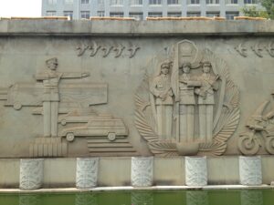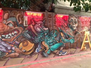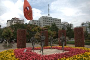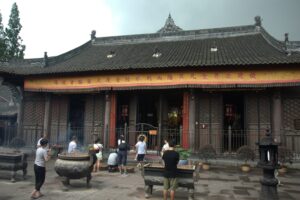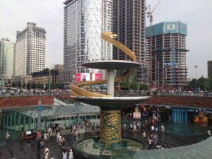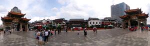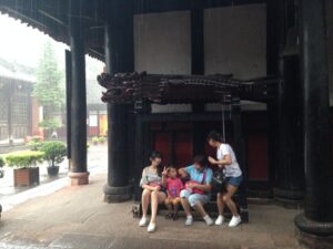 03 Aug – 14 hours after boarding the train, we arrived to Chengdu! We slept in as long as we could before waking up and grabbing a bowl of instant noodle soup for breakfast (the train compartments provide free hot water). Once at the Chengdu train station, we grabbed taxis to the Lazybones Hostel. Even with maps.me, the taxis had a hard time finding the hostel but we eventually figured out that we had to walk a block away to find it. The hostel was nice…our double room was spacious and clean. Our plan was to do a bit of afternoon sightseeing but it started raining shortly after we checked in. Luckily, the downpour lasted about 5 minutes so off we went with Gill and Denise to the Wenshu Monastery. Unfortunately, the rain was intermittent all afternoon long, so we got drenched while exploring the monastery. Denise and Gill opted to head back to the hostel while we figured we’d check out the metro and hop over to Tianfu Square to see the Mao statue. Tianfu Square is home to several shopping malls so we figured we’d do a bit of shopping to buy some tank tops since the weather was gearing to warm up for the duration of the trip. We had a bit of a mix up with the metro tickets since you can’t buy them in advance. We thought we could buy all our tickets at once (for the roundtrip), but later found out you need to buy each set immediately before using them…lesson learned. Back at the hostel, we cooled down with a shower and then linked up for a group meeting in the lobby. Tig gave us information for tomorrow’s agenda and since everyone else raved about the burgers here, we opted to have dinner at the hostel (the burgers are good!).