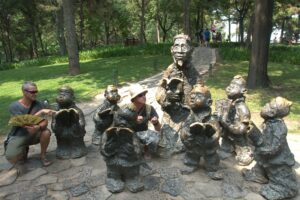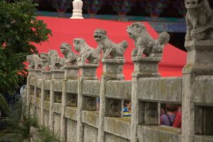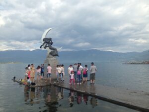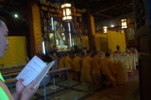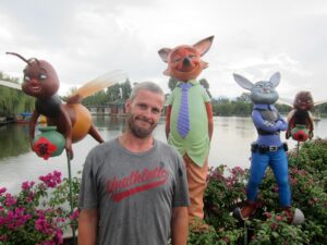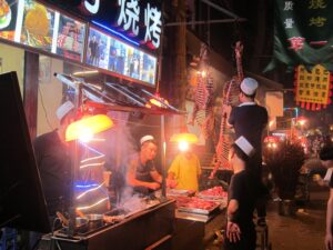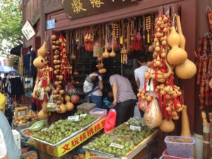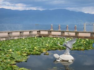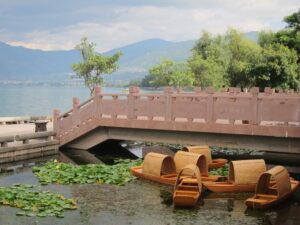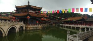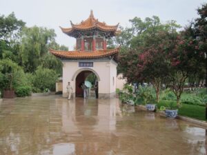 06 Aug – Since breakfast wasn’t included, we decided to grab some instant noodles from a nearby convenience store. At least the hostel provided hot water for coffee/tea so we were able to make breakfast. The Internet was down for the morning, so we can up with a plan to explore Kunming and were on our way. After leaving the hostel, we hopped on a bus to the Yuantong Temple, one of the city’s highlights. It was a colorful morning to visit because the monks were having a special ceremony. All visitors were invited to join them in prayer and a bowl of food afterwards but we declined. From the temple we walked to the Green Lake Park which was worth a quick wander. Next up was the Old Chinese Military Academy. It was a bit boring but at least the entrance was free. From there we walked through a local market that had lots of meat, pastries, pickled goods, and dried fruits and nuts for sale. We couldn’t resist grabbing a bag of homemade pork skins and pastries to munch on before we headed over to Wal-Mart. We only recently found out that the chain has made its way to China and this was the first store we stumbled across in China. It was actually quite impressive to see a huge store filled with local products alongside Wal-Mart’s generic “Great Value” products. Definitely the biggest shopping store we’ve seen over the past month in China. Understatement to say we went a bit overboard here in our snack purchases…mooncakes, roasted duck, snickers, spicy peanuts and chips were just a few of our buys. Lunch was roasted duck and mooncake and we immediately kicked ourselves for not buying more! After eating, we made our way to the Bird and Flower Market. There were birds and flowers for sale, but also lots of other random things so we’re not sure why the market is called the “Bird & Flower” market. Back at the hotel, Tig said the rest of the group had gone over to the Daguan Lake Park. Since that was on our list of things to see, we made our way out there but just as we bought our tickets it started to downpour. The bonus was that drove the crowds away. The cons were that it made for miserable sightseeing conditions. Nevertheless, we enjoyed our stroll around since it felt like we had the entire park to ourselves…a rarity in China! After a couple of hours here, we caught a bus back to the hostel where took a refreshing shower. Tig warned us that Lars was keen for a night of karaoke but we weren’t up for it so we laid low for the rest of the night to avoid the peer pressure of being forced to go.