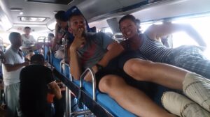 08 Aug – Yay…after 5 weeks in China, we were moving on to Laos! We were really looking forward to today for a long time. After having a quick breakfast in the room, we met up with the group and took taxis to the border. Tom coordinated a ride for us from the Boten border crossing to Luang Namtha with a bus driver but it seemed shady as shit because the bus appeared full and no tickets exchanged hands. Just some money and a hand shake. But first we had to lug our bags over to the passport control area, have our gear inspected and get stamped out of the country. Tom vaguely promised us that the bus would meet us on the other side once we got through all the border crossing formalities. We thanked him for being our escort for the past month and just like that, we were through. Goodbye China!