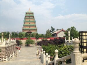 02 Aug – After last night’s shenanigans, we slept in and managed to squeeze in breakfast at 9 am. We would have slept longer but we wanted to say goodbye to Ichi who was the first member of our group to leave the expedition. The reason she wasn’t joining everyone else to Beijing? Her one-month visa was expiring tomorrow and she had to be out of the country before then. It was bittersweet saying goodbye to Ichi…she has been a fun travel companion and we can’t wait to see her again one of these days. Lars was sad as he is gonna miss his super awesome tent buddy! Since we were taking the night train to Chengdu tonight, we had to check out by 11 am. Not wanting to be stuck in the Xi’an heat all day, we decided to hang out in our room until then, relaxing in the wonderful AC. After checkout, we lugged our bags over to the one room that Kate had organized late checkout for and dropped our gear there. Tig was keeping an eye on everything so we chatted briefly before linking up with Lars to check out the Shaanxi History Museum. It was a long, sweaty walk to the museum and once we saw the ridiculously long queue into the museum (at least a 1 to 2 hour wait), it was an easy decision to skip it. Instead, we detoured to the Giant Wild Goose Pagoda. It had green skirting around it for renovations so we didn’t stay long. Since we had opted to walk here, all three of us were pouring with sweat. Xi’an heat and humidity is no joke! We wanted to bid farewell to the group that was departing to Beijing and rather than hoof it back, we decided to split a taxi 3 ways…well worth it. It was a sad moment as we said our goodbyes to Kate, Kyle, Chris, Warner, Kate F, Daniel, Greg, Molly, Kevin, SCUBA Gill and Andy…it won’t be the same without them! After seeing them off in taxis, we decided to grab some grub for dinner. Gill had mentioned the McDonald’s down the street but that proved impossible to find. The golden arches were clearly visible from the road side but we went up, down and around the building before finding it tucked away in the basement. Back at the hotel, we cooled down with quick showers and waited for our departure to the train station. That was when we first heard that our new passenger, Teresa, had decided she couldn’t bear the thought of traveling on local train. Apparently she had a mini-meltdown and was signing off the trip already, with the vague promise of meeting us in Laos. We were shocked to hear that the idea of riding on the train was too stressful for her but wished her the best of luck. After a bit of a delay, we were finally ready to leave Xi’an. Tig organized a van to transport us all in one vehicle. The station was 27 km outside of town so it was a long ride to get there. When we arrived we still had about two hours to kill before the scheduled train departure. Unfortunately for us, passengers weren’t allowed to enter the train station until just before the train arrived, so we were stuck sitting outside on the ground. We found a spot large enough for all of us to plop our bags next to and sat down before we realized this was most likely a pee zone…the entire area smelled of urine! Gross!!! Two very long hours later, we were finally granted access into the train station and it was a free for all push-fest. Tig was given a hell of a time because of her pace-maker (security insisted that she pass through the body scanner) but after arguing for a while, they finally let her pass without going through the metal detector. Train arrived, we boarded the train and went in search of our bunks. Unbelievably, this sleeper train had bunks stacked three high and it was a tight squeeze to scramble on board. Our group was spread out but we managed to get settled in. Immediately after the conductor came by to examine everyone’s tickets, the lights were shut off and we managed to get a bit of shut eye. Onward to Chengdu!