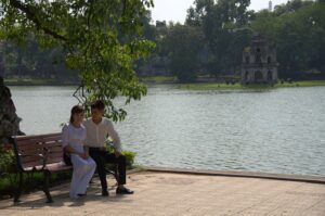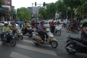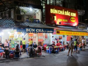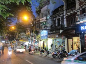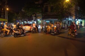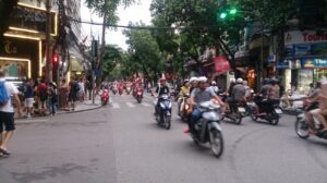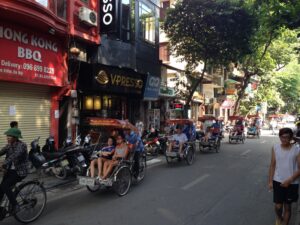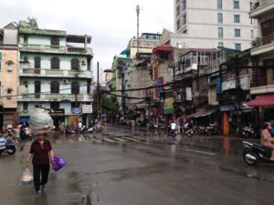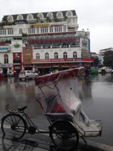18 Aug – Our overland journey came to an end with the flight from Vientiane to Hanoi. But no matter, as a group we had voted to fly for an hour versus a 13+ hour bus ride…it was a no-brainer decision! Lars and Denise got Vietnam visas upon arrival while the rest of us already had our visas so we breezed through passport control and waited for our luggage. Tig coordinated a ride into the old quarter of Hanoi for all of us but once all of our luggage was shoved on, the driver suddenly doubled his asking price. It took us about a minute to offload everything. No way we are going to pay double what was initially agreed to. A public bus with a fixed price (5,000 Dong per person) came along and we hopped in for the hour long journey into town. Luckily for us, the bus dropped us about 600 meters from the Grand Holiday Hotel, which Tig had booked for our 3 night stay. Unluckily for us, it started raining as we were making our way through the old quarter. We made it to the lobby of the hotel just before the streets flooded under monsoon like conditions. While attempting to check us in, Tig discovered to her dismay that her booking.com reservation could not be honored because the hotel had lost internet connectivity all day long and they had inadvertently given all available rooms away. Tig argued with the manager and was given one room that could accommodate 3 people (we quickly volunteered to team up with Lars to claim the room). However, everyone else had to trudge down the street to search for new accommodation. When Ant and Helen heard about the 6 bed dorm at the Hanoi Lucky Hotel, they immediately decided to upgrade to a private double room at another hotel, so our group was split between 3 different hotels. It was pouring cats and dogs for a couple of hours so after trying in vain to wait it out, we decided to wander around to get some money, food and drinks. There are ATMs aplenty in the old quarter and street food in Hanoi is easy to come by so mission accomplished in less than an hour. Back at our hotel room, we discovered that the balcony door would not shut, allowing mosquitoes easy access to our blood. Hmmm, its gonna be a long couple of days in Hanoi!