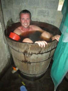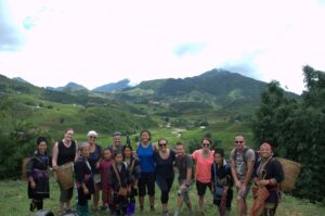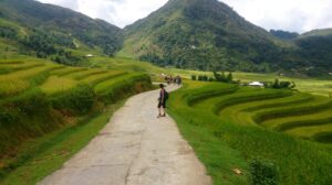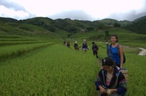 We flew into Hanoi the night before Typhoon Dianmu hit northern Vietnam. Tucked away in the old quarter, our original hotel (Grand Holiday) claimed they never got our booking because the storm had knocked out internet for the majority of the day and almost all available rooms had already been given out. Thus our group of 9 had to be split up along Ngo Huyen street, a narrow lane within the Hoan Kiem District. Lars joined the two of us at the Grand Holiday, while the remaining 6 trudged along a flooded street to the Massive Hostel. Ant and Helen decided to upgrade from the 6 bed dorm to the Hanoi Lucky Hotel and within our respective hotels, we all waited out the storm which hit the next morning at 10 am. Due to the torrential rain, sightseeing in Hanoi was a bust but we did manage to squeeze in a show at the water puppet theater, drink egg coffee (a Hanoi specialty), and stuff ourselves silly on bun cha. Tig optimistically booked us on a 2 day trek with Sapa O’Chau so we left Hanoi towards Sapa on a night train. Imagine our disgust when the train stopped suddenly at 1 am with an ominous announcement that due to flooding, train travel was temporarily suspended and we would be bused for a portion of our trip. An insufficient number of buses were awaiting all the train passengers and as a hopeful solution, our bus driver tried to squeeze an extra passenger in between Helen and Becky (which would have resulted in 5 people sharing 4 seats or a complete stranger sitting on the girls’ laps). Helen’s adamant “no, No, NO, NOOOOO!” refusal reinforced by a finger wag quickly became legendary and we all agreed we were very happy that Helen was on Team Sweat Monkey instead of Team Bus Driver because she is super scary when she gets mad. After a 45km bus ride, we boarded another awaiting train for the remainder of the ride out to Lao Cai, arriving just before 6 am. A short hour ride brought us from Lao Cai to Sapa and we grabbed a quick breakfast in town. Sapa is a pretty neat mountain town full of ethnic minorities, with the Black Hmong and Red Dao the two main tribes. Our uber friendly guide, Su from the Black Hmong tribe, gave us an exuberant greeting and led us on a 14 km trek to the village of Ta Phin where we stayed with a Red Dao family (Mrs May Sinh and her husband Vang). The trek was brilliant, with sunny weather and gorgeous rice paddies. The best part of the day was undoubtedly the herbal bath in a barrel tub – the Red Dao are experts in herbal medicine and we thoroughly enjoyed this unique experience. Dinner in our homestay was delicious and Robby represented Team Sweat Monkey by drinking Vang under the table with his home-brewed rice wine! Everyone agreed Sapa was an amazing experience and we were thrilled that everything worked out weather wise. From Sapa back to Hanoi, we had a sleeper bus that took about 6 hours. The rest of the group took off for Bai Tu Long bay the next day while we enjoyed 2 days of Hanoi on our own (Military History Museum, Ho Chi Minh’s mausoleum, Long Bien Market, Temple of Literature, Hoan Kiem Lake and Museum of Ethnology). Its been a whirlwind first week! Coming up we’ll be making our way south, hitting Hue, Hoi An and Nha Trang along the way.
