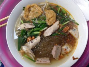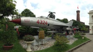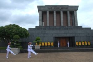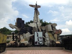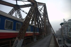 23 Aug – Goodbye Oasis family! We will enjoy the next couple of days in Hanoi without you. Lars swung by to drop his bag with us while the group headed out to Bai Tu Long Bay. Since we had already done Halong Bay and we thought this excursion was too pricey, we opted to hang in Hanoi while everyone else got some sun and sea without us. Happily, today was the first rain free day in Hanoi thus far, so we made plans to hit the streets. First stop was just outside the hostel where we ran into a street vendor (one of those hard working ladies carrying a wooden basket laden with food). After ordering 2 bowls of noodle soup for breakfast, we walked over to check out Hanoi’s Lenin Statue followed by the Vietnam Military History Museum. Two thumbs up for the museum, which had an impressive display of aircraft, tanks and weaponry. The flag tower was worth a climb, since it gave a nice view overlooking the military museum’s grounds. The tank that tore through the gates of the palace in Saigon to signal the end of the Vietnam War was on display here, as were some horrific photos showing the impact of Agent Orange (dropped by the US and still having devastating effects on the Vietnamese generations later)! We are fiercely against chemical warfare as it is a savage and brutally indiscriminate way to wage a war. After the museum we headed to the Imperial Citadel, but it didn’t really impress, so we gave it a miss. Next up was the Presidential Palace, then Ho Chi Minh’s Mausoleum, and the One Pillar Pagoda. We contemplated visiting Ho Chi Minh’s house but ended up skipping it and heading over to the Temple of Literature instead. Robby had been on a quest to buy a rain poncho. No sooner did he spot one and bargain it down to an acceptable price when the skies opened up and started pouring rain. Despite the fact we were right across the street from the Temple of Literature, the thought of getting soaked while sightseeing did not appeal so we decided to revisit when the weather improved. Back at the hostel we enjoyed a couple of beverages and the AC. Dinner tonight was courtesy of another Hanoi food blog where we discovered the joy of banh cuon. Its a small rice noodle dumpling filled with pork and liberally sprinkled with fried shallots and herbs, served with fish sauce and viola. We also ordered some cinnamon pork and Chinese sausage. Our dinner was tasty but not as filling as most of the other meals we’ve had in Hanoi. Early bed tonight since we will be getting up at the crack of dawn to check out the Long Bien Market and bridge in the morning.