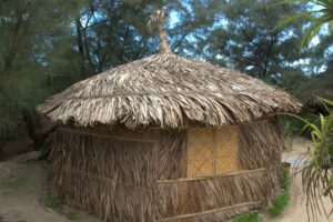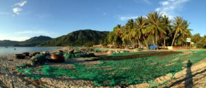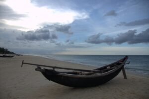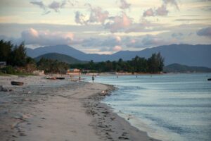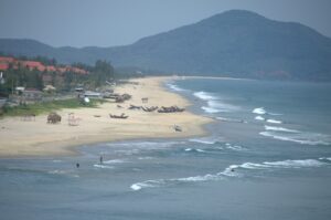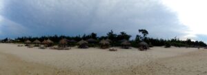 31 Aug – We pulled into Nha Trang at 8:25 am and our lodging for the next 3 nights, Jungle Beach, had a van waiting on us. Jungle Beach is located about 23 km north of Nha Trang out on a small peninsula so we settled in for the drive, stopping midway to grab a streetside breakfast. It quickly dawned on us that we were going someplace remote, far away from the tourist trap that Nha Trang has become. Once we pulled into Jungle Beach, we were greeted by rustic bamboo bungalows and a pristine beach. All meals are included during our stay here, so we only had to worry about drinks. After checking in to our respective rooms, we hit the beach for some downtime. Luckily, Jungle Beach has built up lots of shady areas to lounge beneath, as the sun would burn you in minutes. Lunch was a communal affair with all guests gathering in the main reception area to share a homecooked meal. Dinner was the same deal. We had heard that we were on the tail end of the season to check out the salt fields nearby, so after some debate we coordinated an early morning bike rental through Jungle Beach. After dinner, a bunch of us hopped in the ocean to see the bioluminescence which was way cool. What an awesome slice of paradise! The staff built a small bonfire on the beach, encouraging all its guests to stay up late to chat with each other.