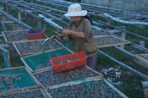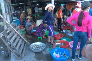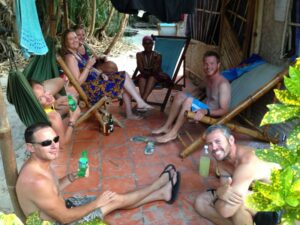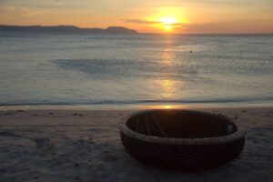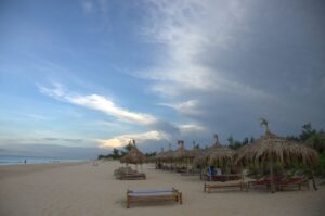 01 Sep – 4:30 am and we were up to get to the nearby salt fields for sunrise. We knew we were cutting it close to see the salt fields as the season generally runs from Feb to Aug/Sep. Unfortunately, when we arrived, the salt mounds were long gone in preparation for the rainy season. No salt mounds and no workers harvesting the salt…boo! The salt fields themselves were flooded with water, and it was obvious they would stay in that dormant state until next year’s salt season. Oh well, we tried and it didn’t work out. No biggie. Instead, we got a consolation prize of an awesome sunrise. Back at Jungle Beach at 6:30 am, we had to wait another 30 minutes for breakfast. Since we no longer needed the bike for the rest of the day, we asked the owner for a discount since the salt fields were a bust, but Lars was keen on riding later on today so we agreed to split the cost with him, keeping the bike for the entire day. We hit the ocean while it was still bearable but once the heat started to rise, had to stay under shade for the majority of the day. Neither one of us were keen on getting sunburned here! After lunch we sat out on our deck until Lars called us down for drinks on Denise’s party deck. We spent the rest of the afternoon drinking and going for a swim. Dinner was a beach barbecue put on by the Jungle Beach staff. The pork ribs were divine! Then the group of us hit the ocean for an evening swim to check out the bioluminescence. Even Denise joined in! Considering the fact that she can’t swim, it was brave decision but she felt it was worth it as the sea sparkled beneath our touch…so awesome! Our human pyramid scheme didn’t pan out because it was just too damn hard with everyone a bit tipsy but that didn’t stop a drunk Robby from recruiting a petite Vietnamese lady from joining in our efforts, claiming that he could support her with one hand. Poor lady had no idea what she was in for but she was eventually rescued by her friends. Back on dry land, Robby and Tig hit the kiddie pool in their effort to rinse off the salt water (versus walking 10 feet over to the showers!) Our bottle of vodka quickly disappeared as Robby peer pressured everyone (other guests weren’t spared) to drink his concoction of “RED TANG”. What a night!