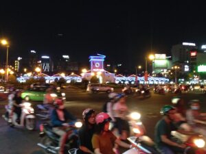 02 Sep – After breakfast, we checked out of Jungle Beach and got a ride the Nha Trang train station for a full day ride to Saigon. It sucked having to waste a full day on travel but we had voted as a group on whether to catch a night train to Saigon. However, it would have brought us into the city at 5:30 am, and we wouldn’t be able to check into our hotel until much later so we opted for the day train instead. Thankfully, the train ride was comfortable and we were able to spread out by claiming the empty spare seats around us. We pulled into Saigon at 7:20 pm and took taxis to the Saigon Odyssey Hotel. What crazy chaotic traffic! Note to self: avoid downtown during rush hour…that traffic was insane. At check in, we were told that the hotel had upgraded all of us to better rooms at their sister hotel just around the corner. After dropping off our gear (yes, we get to offload our heavy bags tomorrow…can’t wait!!!), we hit the streets for some food and ran into Connie who joined us. The three of us ate at a place just a few doors down from the hotel. We laughed when it dawned on us that our food actually came from a bunch of different kitchens nearby. Our restaurant didn’t actually have its own kitchen but was the middle man, outsourcing the cooking to others! However the food was still good and it was cheap, so it ticked all the boxes.
