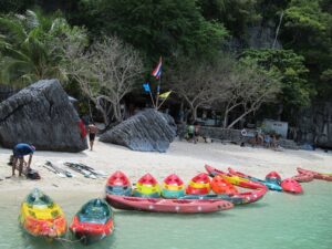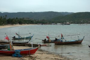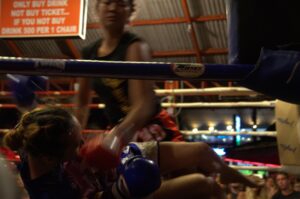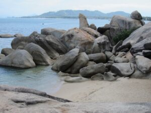 17 Sep – Despite a restless night of rocking and rolling on the train, we managed to get a bit of shut eye. At 7 am, the staff came through to wake us up as we were about 5 minutes out from Surat Thani. Little did we realize we still had another hour drive to get to the pier! Once we offloaded the train, we were seperated into groups based on which island we had chosen to spend our “beach week” at (Koh Samu, Koh Tao or Koh Phangan). Since Lars was keen on getting his dive certification and Helen and Ant wanted a small island, the 3 of them were headed to Ko Tao. The rest of us would scatter to the island of Ko Samui. We said our goodbyes to Lars, Ant and Helen and got settled in for our ride out to the Songserm DonSak Pier. In the excitement of getting to the pier and onto the boat, Robby left a bag of our snacks on board the bus. Not a biggie since we can buy more on Ko Samui. The ferry ride took about 90 minutes and we were dropped off at the Nathon Pier. Denise and Connie were headed up to the north part of the island and had coordinated a ride through their hotel so we bid them farewell for a week. Now we were down to 4 (Gill, Tig and us). We had to negotiate hard with a shared songthaew to the Lamai Beach. Our accommodation for beach week? The Samui Beach Resort which had decent reviews and a great rate. Since it is located on the outskirts of Lamai, we were the first ones to be dropped off by the songthaew. Happily, we were upgraded from a simple fan room to an AC room free of charge at check in. We later found out that the budget rooms were being renovated, hence our upgrade. Becky had debated whether to pay extra for the AC when initially booking the hotel so we were thrilled that we got it in the end for free. Ahhh, beach week. When we first booked this 26 week adventure, we were thinking it was rather silly to squeeze in a “beach week” getaway toward the end of the trip. But this little break from the group couldn’t have come at a better time. Especially since all of us had been traveling with each other non stop since April and sometimes little things get on your nerves. It was great to relax, recharge and get away from everyone and everything. The first thing we did after getting unpacked was hit the town to search for some food. The reviews for Pizza del Sol were pretty good so we made a beeline there. As promised, the thin crust pizzas were delicious and the beer cold. The only excursion we wanted to book while on Koh Samui was a visit the nearby Angthong National Marine Park. Since the weather was supposed to deteriorate later in the week, we decided to book a trip for tomorrow. There were plenty of travel agencies strewn throughout town so we stopped at the first one we ran into (World Express Service). The lady helping us gave us a big discount for booking with her so we left happy. Lots of souvenir shops line the main street in Lamai and Robby quickly scored a pair of flip-flops since his are always falling apart. Before heading back to the hotel, we stocked up on snacks and booze for our week’s stay. While in town, we heard about female Thai kickboxing later that night so we made a mental note to swing back into town later on this evening. At 9 pm, we sauntered back out for dinner at the night market in town. The Saturday night kickboxing matches are advertised as free and they were supposed to kick off at 10 pm. But it was closer to 10:30 when the first match started. Even though watching the fight is technically “free”, the catch is you have to buy an overpriced drink or else pay 500 baht to sit in a chair near the ring. We were more than happy to pay for a drink which we nursed the entire time. The fights were pretty good and there was plenty of action to keep us entertained. The crowd seemed especially entertained when a female kickboxer knocked out a ladyboy kickboxer but we felt bad they were celebrating in her defeat. The halftime show required audience participation as about 30 people were pulled in to the ring. Everyone had to tie a balloon around their ankle and the goal was to pop each others balloon until you were the last man standing. Good fun and we got to see some creative moves in the ring!