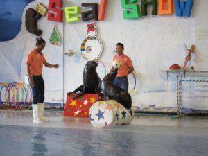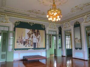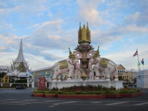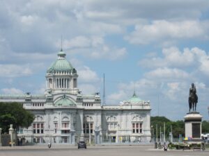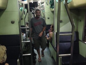 16 Sep – We had a late sleep in and hung out in our comfy room until the noon checkout. Our friend Nancy Rivera (from our contracting days) was supposed to arrive yesterday but her flight was cancelled and she informed us that she would be in today so we were really keen on seeing her. Around lunch time, we finally got word that she was at the Democracy Monument so we hustled over for a quick reunion. Nancy was on R&R with her sister and niece and today was day 0 of their busy SE Asia vacation. We were so thrilled that she had taken the time out of her tight schedule to squeeze us in. Since we had already checked out of the hotel and our train to Surat Thani wasn’t until tonight, we had a few hours to kill. What better way than a couple of hours at the nearby Dusit zoo? Along the way we came across the grounds of the Police Museum (the old Parusakawan Palace). This compound houses the Chitralada Villa, which was completely restored and free to visit. From here, we walked over to the Royal Plaza, which has a King Rama V (Chulalongkorn) statue in the middle. The zoo was adjacent to the plaza, and we spent a couple of hours checking out the animal exhibits here. The seal performance was especially popular with the locals although we did feel really bad for the penguins cooped up in a tiny enclosure. By midafternoon, we had to head back to link up with the group. But first a quick pit stop at the Dusit Palace grounds, which houses the Ananta Samakhom Throne Hall. Since we had a long night train, we grabbed some snacks for the ride and managed to squeeze in a cold shower at the hotel to cool down after our long hot day in the sun. It was a short taxi ride to the Bangkok Railway Station (Hua Lam Phong) where we had over an hour to kill before our train arrived. Since we were feeling peckish, we grabbed dinner from a street vendor. The food was OK but the drinks (ice coffee) were bad. Really bad. Like if you drink this you will get painful diarrhea all week long bad. Robby tried to refuse to pay for it but the street vendor held firm. The train from Bangkok to Surat Thani (the ferry port for our onward trip to Koh Samui) arrived and we all hopped on. The train configuration was a bit weird. There were two seats facing each other on both sides of the train through the entire car. The bottom seats fold into each other to form a “bed” while up above, a foldaway bed drops down. Unfortunately, the train did not have AC but there were fans that kept us from sweating too much. After about an hour the staff came through and folded all the seats into a bed. They even made our beds for us with clean sheets! Most of us scored upper bunks which meant we were closest to the fan but also to the overhead lights (which were never switched off). The train car felt way too warm during the night, resulting in an uncomfortable sleep.