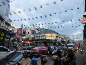 24 Sep – Breakfast was at a restaurant just across the street from the hotel. We had briefly considered the hotel restaurant for breakfast but it didn’t look appealing so we gave it a miss. Our group met up in the lobby to wait on the van to Malaysia. Ant and Helen had managed to find the most massive iced coffee to go containers ever…those drinks were gargantuan! The van arrived and we loaded in, departing at 9 am. Other passengers were picked up around Hat Yai, and it was a good thing we loaded up first because the last couple of passengers were simply squeezed into the smallest and most uncomfortable seats. After exiting Thailand at the Thai-Changlon border, we were told to offload all our gear as we had to switch to another van for the remaining drive into Penang.