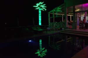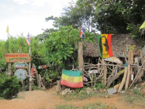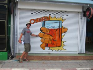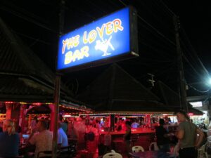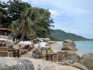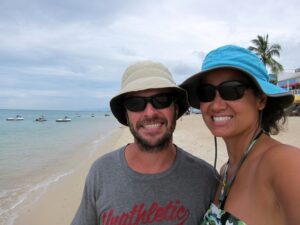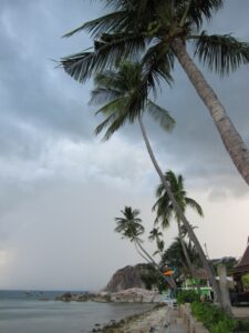 22 Sep – Yay! After days of feeling miserable, Becky was on the mend today. We decided to celebrate by hitting the town, walking from one end of Lamai Beach to the other. On our return walk, we cut through town and Robby returned to the souvenir shop where he had bought a pair of flip-flops. He liked the first pair so much he decided to get 2 additional pairs. Meanwhile, Becky got two pairs of pants making the seller very happy. We got to learn a bit more about the owners and found out they hailed from India. They told us that it was low season now so they were struggling to get by but once high season hit, they would have more business than they could handle. Lunch was at a restaurant offering a lunch special. We weren’t expecting much but Robby discovered this place had a kick ass Pad Thai! He liked his meal so much he ordered a second plate of it, bringing a big smile to our attentive waitress. After chilling by the pool for the afternoon, we decided to link up with Tig at Bikini Bar BQ for ribs. What a great decision and too bad we waited until our last night to discover this gem. We ordered a half kilo of ribs and another half kilo of chicken wings and both meals were to die for. Serious yum factor! Ko Samui has been good to us so we are sad that our beach week break is over tomorrow. This island has been perfect for some serious down time.