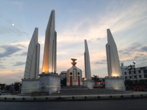 13 Sep – Welcome to Thailand! We exited Cambodia and entered into Thailand at the Baan Khlong Luk border. No fuss and we were back on the bus by 2 pm for the long onward drive to Bangkok. Stops were few and far between, and it started to downpour as we neared the capital city. Traffic grew increasingly chaotic as we got closer to Bangkok, and it took well over an hour in congestion to reach our destination near Khao San Road. By the time we arrived, it was 7:30 pm and we were ready to get off the bus. Tig took us on a 15 minute march to our lodging for the next few nights, the Paragon One Residence near the Democracy Monument. This bare bones hotel seemed really strict and no-nonsense. There were plenty of signs indicating the hefty fines that would be added on for any “damages” incurred, such as staining our white bed sheets/bath towels, or losing our room key! However, the rooms were kept immaculately clean, the AC ran cold and most importantly, our room was bed-bug free so we were happy! After dropping off our gear, our first priority was hitting Khao San Road in search of an ATM. All of the machines appeared to charge a 200 TB fee (just under $6) per transaction! Pretty outrageous fee to access our own money so we did our best to calculate how much we needed for our duration in Thailand. Hopefully this will be our one only ATM transaction over the next 9 days! Dinner was at the petite Khaosan House Bar & Restaurant (excellent Pad Thai).