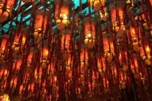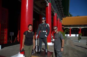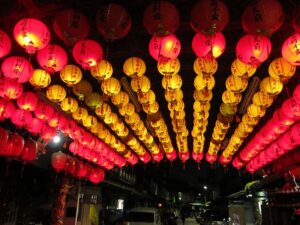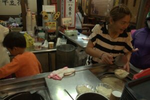 19 Nov – Our last full day in Taiwan. Since the Bao’an Temple was within walking distance, we felt it would be wrong to skip it. While there, a local lady recommend that if we were into temples, we should make a special effort to visit the Qin Shang Temple this evening since it was a special night full of parades, fireworks and displays. Next we walked to the Lin An Tai historical house. It was worth a quick visit since it was free. The big event of our day was visiting the Tank Kung Bar-B-Q restaurant for lunch right when it opened at 11:30 am. This place is famous for their Mongolian BBQ and hotpots. We skipped the hotpots and went for the all you can eat Mongolian BBQ buffet bar (stocked with bottomless chicken, venison, pork, mutton and beef) all for the bargain price of NT$450. Little did we know but Becky’s dad told us that Mongolian barbecue is a stir fried dish that was invented in Taiwan in the 1950s. Tank Kung was packed with locals and we knew we had come to the right place. 2 hours and countless bowls of food later, we took a short breather before hitting the dessert bar to complement our meal with ice-cream and tapioca pearls. Needless to say we felt slightly sick for the rest of the afternoon after our massive glutton fest. We definitely got our money’s worth! The afternoon was spent on a free walking tour that met up at the NTU Hospital MRT stop. There we met the guides from “tourmeaway.com” for our Old Town Taipei tour. We got to walk off our massive meal and visit the 228 Peace Memorial Park, Presidential Office, Inner City Market, 73 flavors ice cream shop (wasabi or pork knuckle ice cream anyone?), Zhongshan Hall , Ximending, and Red House. After our tour, we headed over to Qin Shang Temple to check out the festivities before strolling over to Longshan Temple and its nearby Huaxi Night Market. What a day! Back at the hostel, we got ready for an early morning checkout since our flight back to Saigon was at 9 am.