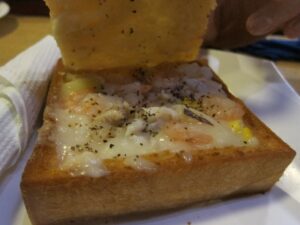 16 Nov – Today was a travel day so we woke up just before 7:30 AM and went down for breakfast before checking out. Back at the Hualien train station, we bought another combo ticket to return to Taipei and took the slow train back to Lou Dong. The slow train stops at every single stop and there are no assigned seats but it wasn’t busy and we had plenty of room. From Lou Dong, we boarded a Kamalan bus (one departing every 10 minutes) back to Taipei’s main station. At the main station, we quickly found the bus terminal where we bought our tickets for a Ho Hsin bus to Tainan (NT$340). The bus was super comfy and extremely spacious. Our 5 hour bus ride flew by and before we knew it, we were in Tainan. Apparently there isn’t a central bus station in Tainan so we were dropped off at a random bus stop near a park in the center of the city. But no matter, it was a short walk to our hotel, the centrally located Tie Dao Hotel (NT$1160 for 2 nights). Even though our room was located on the 14th floor, it had an inward facing view looking at another building so unfortunately no Tainan city view. We had read that Tainan is a city for foodies, so we immediately went out in search of some of its best dishes. Chih Kan Pedder’s Noodle is a restaurant that serves many of the must try meals so we ordered the oyster omelet, Danzai noodles, pan fried milk fish, braised pork over rice, coffin break stuffed with seafood, and garlic pork (NT$500). What a way to kick off our Tainan food tour! Afterwards, Becky still had room for tofu pudding, a Tainan specialty (NT$25 for a massive bowl). Robby opted for boba tea instead and once our bellies were completely stuffed, we headed back to our room to chill. We had read online that the Tie Dao had free porn which we can definitely attest to being true. Its comically bad porn though so don’t make a special effort to book this hotel for it!