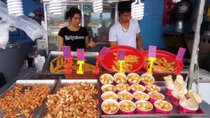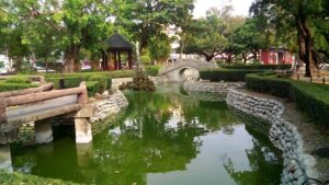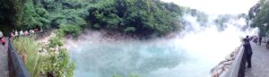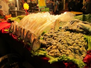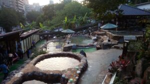 12 Nov – It was a long restless night without AC, the window wide open, and loud drunk people in the hallway slamming doors, talking and using hair dryers. The couple that went to sleep early also woke up super early and started packing, which woke up everyone else in our room. Since we were fully awake at 7 am, we decided to get an early start to our day. After packing our day bags, we went straight to the Minquan West Road station where we got a 24 hour metro card (NT$180). Then we hopped on a train to Tamsui, got breakfast (cheese stuffed bread…yum), and hopped on a bus to Danhai to see the Tan-Shui Kang Fishing Harbor. After scoring a bucket of spicy squid for NT$100, we returned back to Tamsui and visited Fort Santo Domingo, the Former British Consulate Residence, Oxford College, the Tamsui Customs Officer’s Residence, and schools built by George MacKay. It was a short walk back into Tamsui for lunch (combo platter of BBQ chicken, fish ball soup, bok choy vegetables and steamed rice, NT$160) before we stopped in on a couple of temples and got lost in the scrum of people at Tamsui Old Street. Everyone was out looking for food…we were amazed at the long lines for cakes and other street goodies. Back on the MRT, we hopped over to Beitou to soak in the hot springs. After walking to the Beitou thermal valley, we joined the throng of visitors to the Millennium hot spring (NT$40 entrance). Robby was told his board shorts weren’t allowed so he had to buy tight men’s swim trunks, ha. The hot springs were bliss and we had to jump from hot pool to cold pool every few minutes to make it more bearable. From Beitou, we jumped back on the MRT and then took a local bus to the National Museum (open on Friday and Saturday until 9 pm at a discounted rate of NT$ 150). Unfortunately, no one told us that from 6:30 pm onward, photography of any type was not permitted. We would have opted to visit during the day, as some of the displays were fabulous. Both of us were exhausted but forced ourselves to get street food at the popular Shilin Night Market for dinner. It was nearing 11 pm when we finally reached the hostel and crashed in our bed. The AC was on tonight and people were a bit quieter so we both had no problems falling asleep.