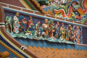 17 Nov – After getting boba tea for breakfast, we spent several hours doing the Lonely Planet Tainan temple walking tour (excellent). Lunch was at a no-name restaurant which was packed with locals. We wanted to know what they knew about this place…turns out you can get great food for cheap prices. We had 2 bowls of chicken noodle soup and lamb dumplings for lunch and it only cost us NT$100. In the afternoon, we hopped onto bus 77 to Anping where we checked out the fort and tree house. Skip the fort and head directly to the tree house, it is amazing! We really enjoyed the overgrown trees and can only imagine what Angkor Wat’s temples must have looked like several decades ago. While in Anping, we decided to visit Anping Bean Jelly for two delicious bowls of tofu pudding with tapioca pearls before having dinner at Chou’s Shrimp Rolls. There we ordered a whopping 5 dishes of shrimp rolls much to the staff’s amusement. They asked us how many friends would be joining us and we had to explain we really like shrimp rolls and all that food was for the 2 of us! To head back to Tainan, we had to hop on tourist bus 88 which brought us back to Fort Proventia for NT$18. It was a short walk back to our hotel where we couldn’t resist getting another boba tea to end the night.