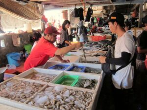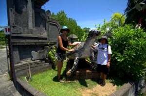 Jimbaran Fish Market: If you are a seafood lover, do not pass go! This place has an amazing selection of fish, shrimp, squid, crab, lobster, etc on offer and best thing is you can have your selection grilled right there on the spot for you. We liked it so much we visited it twice and bought over 8 KG of seafood each time. Much cheaper to ride a bike here, select your own food and pay a nearby kitchen to prepare/barbecue your seafood meal for you. We saw busloads of tourists gathering at sunset for their Jimbaran candlelit dinner and shudder to think of what they paid. Our Vietnamese clan swore the seafood prices here were better than in Vietnam…they give Jimbaran 2 huge thumbs up and so do we.
