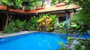 Hotel: Cempaka 3 Inn in Kuta. Since we were paying for the gang, we opted for the cheapest hotel we could find (besides a hostel) and this Kuta central hotel was perfect for our needs. Cost was $5 a person per night (double room, fan only) which is dirt cheap considering there is a lovely swimming pool and free wifi. The helpful staff helped us rent motorbikes (60K per day which dropped down to 50K/day when we opted for 4 days). They also allowed us to self cater in the kitchen which was nice! Unbelievably, the staff even allowed us to bring in and gorge on durian, which most hotels in SE Asia forbid! After spending 8 nights here, we recommend it, but if your budget allows, consider getting a room with AC. The fan-only rooms were uncomfortably hot at night!
