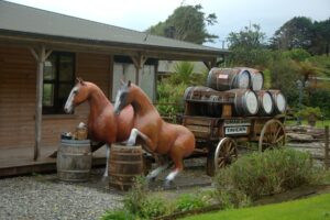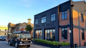An old fire engine outside Hokitika Fire Brigade, which was established in 1865