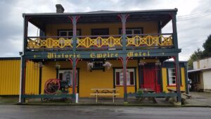 Historic Empire Hotel - our first paid camp site in NZ with power, shower and kitchen facilities; Ross
