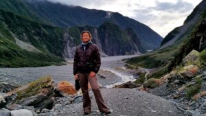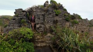 Becky at Punakaiki pancake rocks