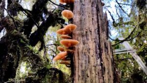 Mushrooms growing on tree bark; Lake Matheson