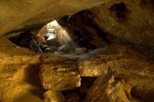 Light shining through the entrance to Moria Gate Arch