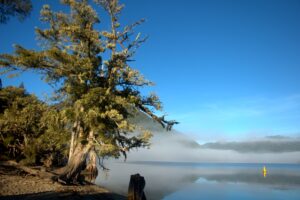 Morning view of our Lake Brunner free camp site