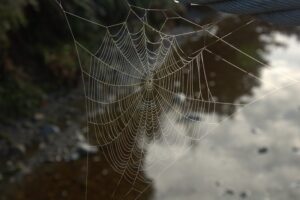 Dewy spider web; Lake Matheson