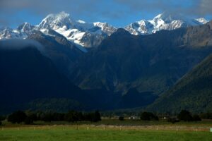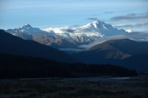 View of Mt Tasman and Mt Cook, the two highest mountains of New Zealand