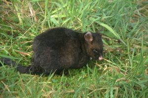 A possum by the roadside. Despite its cute appearance, possums are a major menace to birdlife in New Zealand! Locals don't hesitate to run them over
