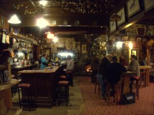 Locals gather at the bar in the historic Empire Hotel; Ross