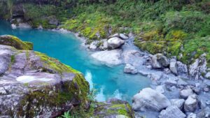 Aqua blue Hokitika river winds its way through Hokitika Gorge - a must do if visiting the west coast!