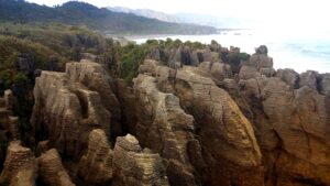 Punakaiki pancake rocks were formed 30 million years ago. They are limestone formations made from dead marine creatures sandwiched by layers of mud and clay