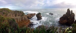 Panorama of Punakaiki pancake rocks