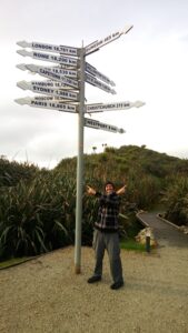 Robby by the signpost on the Cape Foulwind walk