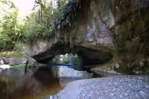 It’s a short easy hike to reach Oparara Arch from the parking lot