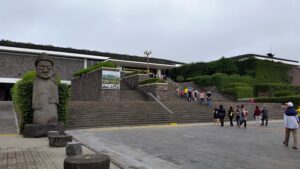 Becky takes a sip of water; Jeju Folklore & Natural History Museum