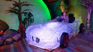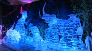 Ice sculptures that visitors are encouraged to touch; Sumokwon