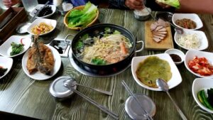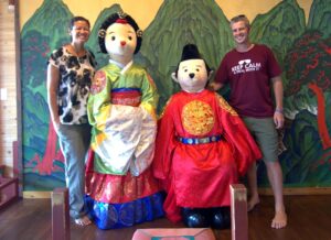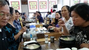 Day 3: Breakfast buffet at hotel. 7:30 am departure for Cheonjiyeon Waterfall, Oedolgae Rock, and Yakcheonsa Temple. Lunch at Supseom Fish Restaurant. Afternoon visit to the Play Kpop Museum, Joanne Teddy Bear Museum, and O’Sulloc Tea Museum. Before dinner, learn how to make kimchi and dried seaweed. Have opportunity to try on traditional Korean dress (Hanbok). Dinner at a restaurant near Doduhang Harbor.