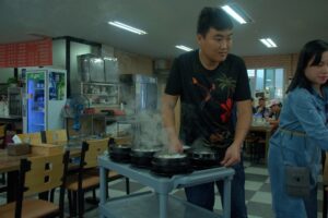 Di Tam, Hai and Chi Xuan about to have Korean hot pot for dinner