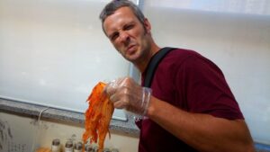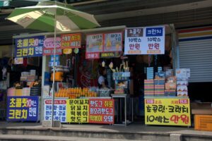 Money is thrown around as everyone gets in on the buying action at the seaweed/kimchi shop